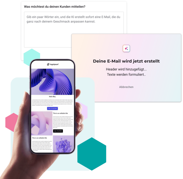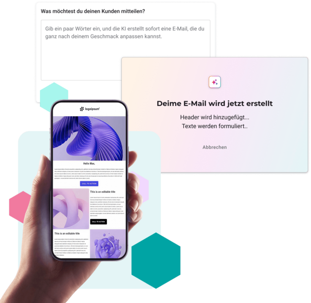 E-Mails mit Text, Bild & Hintergrund, individuell auf dein Unternehmen zugeschnitten.